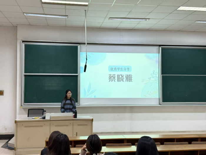 隨后,蔡曉雅同學進一步圍繞團隊建設、成果展示等維度,詳細分享了參賽過程中的注意事項。她總結(jié)往屆團隊的成功做法,建議同學們合理安排時間,注重過程積累,在保障研究質(zhì)量的同時,重視作品的最終呈現(xiàn)效果。