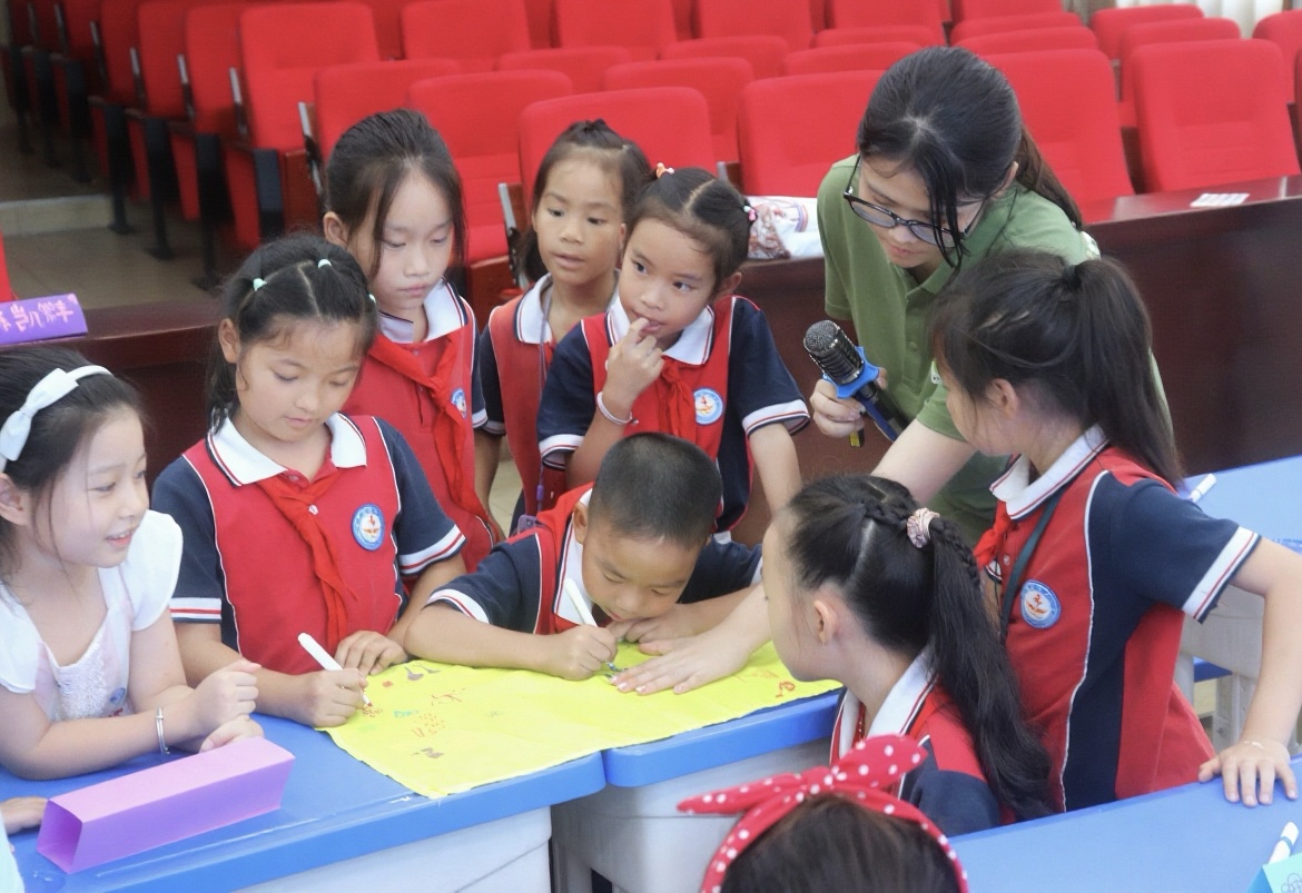 2025年8月16日至26日,這支由多學科優秀學生組成的實踐隊先后走進貴州省貴陽市、遵義市及黔東南苗族侗族自治州施秉縣。在施秉縣第五小學,隊員們通過生動案例和互動游戲,為鄉村學生帶來別開生面的心理健康課程,幫助他們正確認識情緒、科學應對壓力。“以前覺得心理問題離我們很遠,現在我知道該怎么調節自己的情緒了”,施秉縣第五小學五(二)班李繼鑫同學在課后這樣說道。