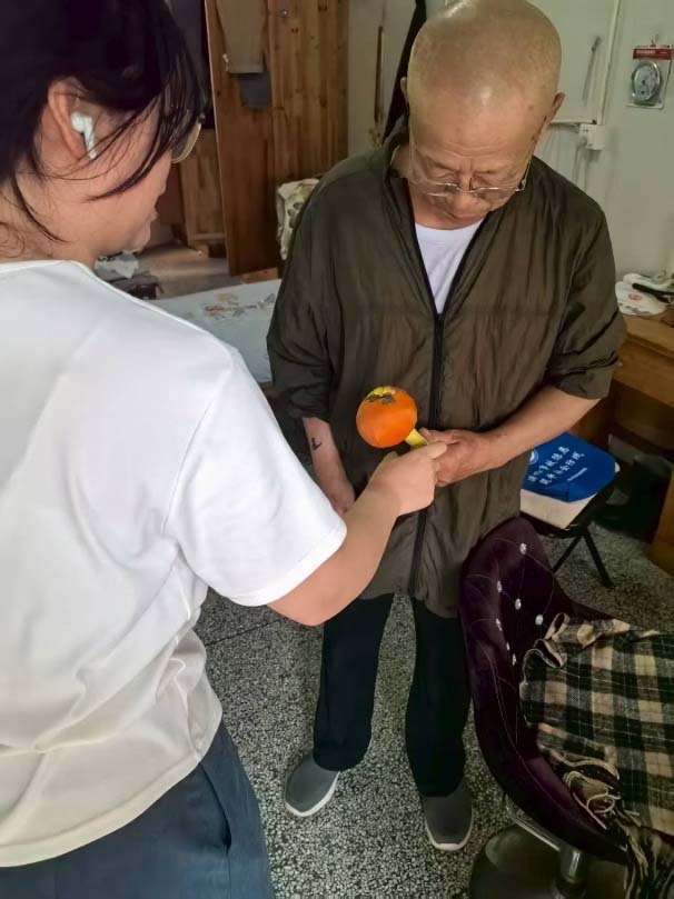 帶著前一日建立的感情基礎和精心準備的禮物,服務小隊于次日再次來到養老院進行回訪。當隊員們將承載著心意的營養品、水果等禮物送到老人手中時,老人們的臉上露出了驚喜和感動的笑容。他們緊緊握著隊員們的手,連聲道謝,這份“意料之外”的禮物不僅是一份物質上的關懷,更是隊員們對老人持續關愛的承諾,讓老人們深切感受到了來自年輕一代的尊重與溫暖。