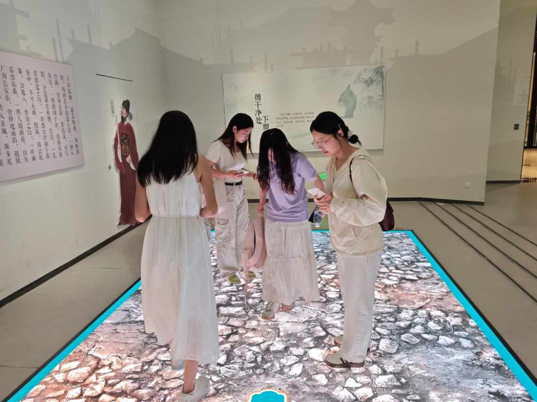 科技賦魂,古韻新生。在齊文化博物館的數字化展區,前沿技術讓千年文脈煥發新活力:隊員們戴上VR設備“穿越”至齊國都城,在虛擬市井中看“臨淄三百閭”的繁華,隨“稷下先生”參與朝堂辯論;機器狗講解員帶著團隊穿梭展廳,精準播報文物背景并實時回應提問,讓參觀更具互動性。這種“傳統文物+現代科技”的融合模式,也在后續走訪的文化企業中得到延伸——在專注齊文化IP開發的企業車間,隊員們看到3D打印的蹴鞠模型、融入“和而不同”思想的文創設計,直觀感受到傳統文化產業化的創新路徑。