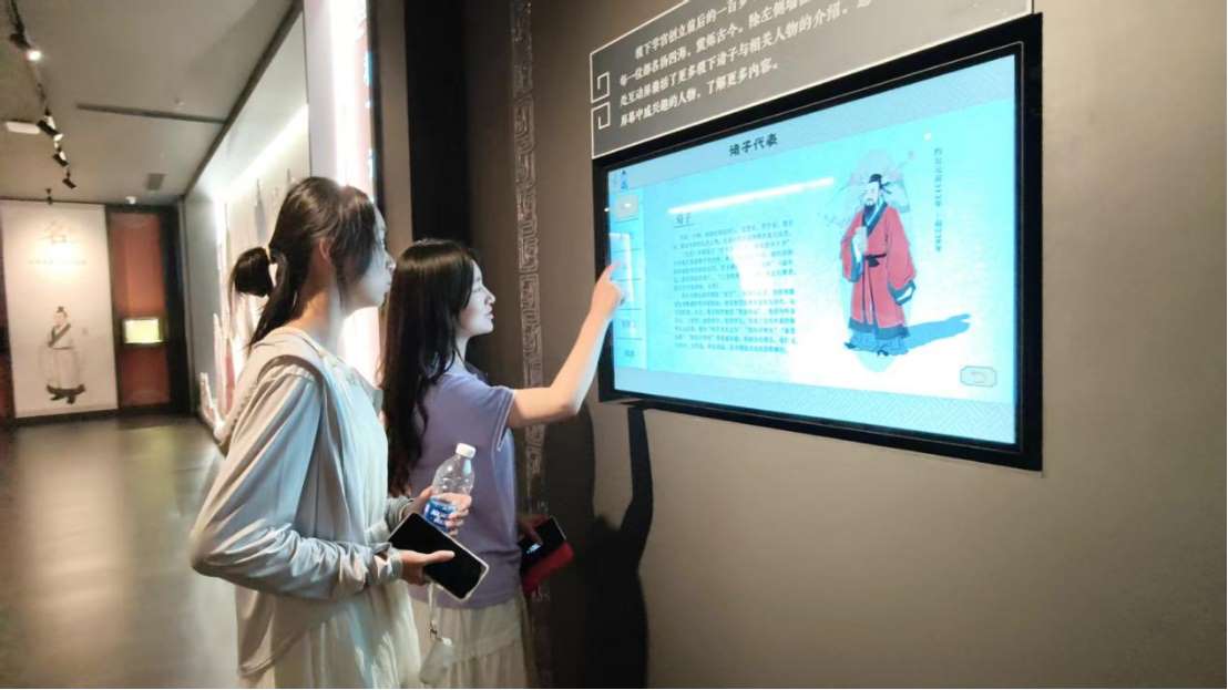 在“稷下講堂”互動展區(qū),實踐團(tuán)成員通過全息投影技術(shù),沉浸式“親歷”孟子、淳于髡等學(xué)者圍繞“人性善惡”展開的激烈辯論,在虛擬與現(xiàn)實的交融中感受百家爭鳴的思想張力;隨后,大家換上曲裾、直裾等傳統(tǒng)漢服,在復(fù)刻的學(xué)宮講堂布景中,于案幾竹簡間效仿古人行禮誦讀,直觀體會“禮別異,樂和同”的禮樂文化與學(xué)宮人文氛圍;互動答題屏前,隊員們分組競答稷下學(xué)宮歷史、學(xué)派思想等題目,從“學(xué)宮始建諸侯國”到“白馬非馬論出處”,在搶答與討論中鞏固知識,深化對“開放包容、求真務(wù)實”學(xué)宮精神的認(rèn)知。