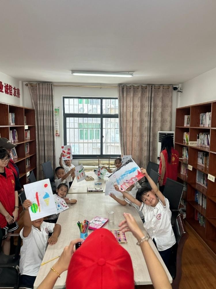 “我畫(huà)了消防員叔叔拿著水槍滅火,還有逃生的路線!”“這是不能玩火的標(biāo)志,小朋友要記住哦!”孩子們用稚嫩的筆觸,畫(huà)出滅火器、消防車、安全出口標(biāo)志等元素,在繪畫(huà)中加深對(duì)火災(zāi)預(yù)防的認(rèn)識(shí)。隊(duì)員們耐心指導(dǎo)調(diào)色構(gòu)圖,鼓勵(lì)他們把學(xué)到的消防知識(shí)融入作品。活動(dòng)最后,實(shí)踐隊(duì)為孩子們送上繪畫(huà)工具套裝,希望他們牢記安全知識(shí),用畫(huà)筆記錄生活。