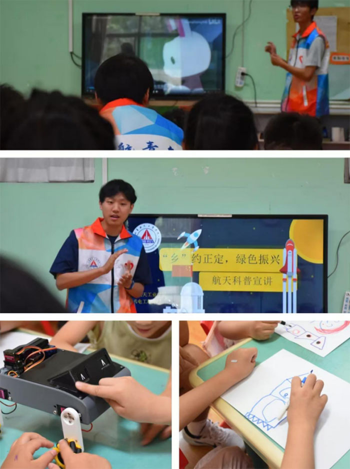 6月24日實踐團走進正華大地幼兒園,開展"紅色傳承·科技筑夢"主題教育活動,通過創新形式為小朋友們帶來別開生面的成長課堂。在紅色教育環節,團隊成員精心設計了互動式教學方案。通過《那年那兔那些事》,將紅色故事以孩子們喜聞樂見的形式生動呈現。科技展示環節成為活動亮點。實踐團展示了自主研制的智能家寵"安瞳",其語音交互、音樂播放,撿垃圾等功能。并教導小朋友畫火箭的簡筆畫。