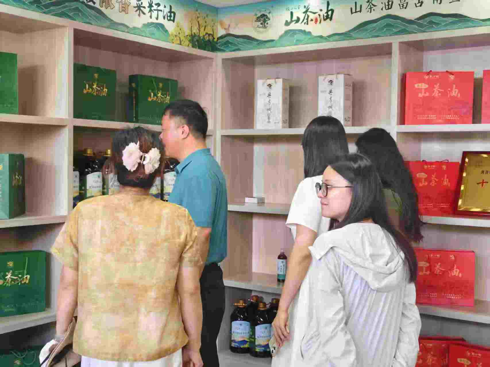 會議結束后,隊員們陪同領導參觀展示館,陳列區里山茶油禮盒有序擺放,“十大名優特產”獎牌熠熠生輝,在這小小的展示館里,隊員們觸摸到了栗坂村茶油產業發展的特色與脈絡。