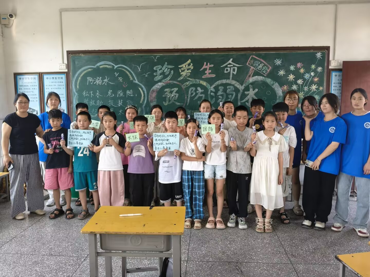 圖為河南城建學院生科學院實踐隊與小學生合照(劉喜蝶攝)