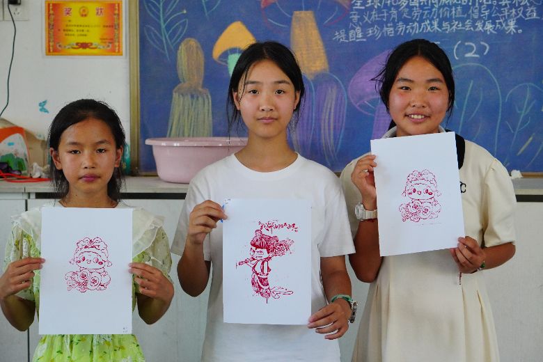 本次暑期少年宮活動為期7天,根據(jù)學(xué)員年齡分為A、B兩個班級,開設(shè)朗誦、舞蹈、英語、繪畫等多元化的興趣課程,并在其基礎(chǔ)上增添了具有中國傳統(tǒng)文化特色的年畫拓印課程,旨在增強(qiáng)學(xué)生們的動手能力,全面提升他們的綜合素養(yǎng)。教學(xué)過程中,志愿者們創(chuàng)新性地將專業(yè)特色與中華優(yōu)秀傳統(tǒng)文化相融合,生動有趣的教學(xué)方式既激發(fā)了孩子們的學(xué)習(xí)熱情,也讓他們在潛移默化中感受中華文化魅力,增強(qiáng)了文化自信和民族認(rèn)同感。