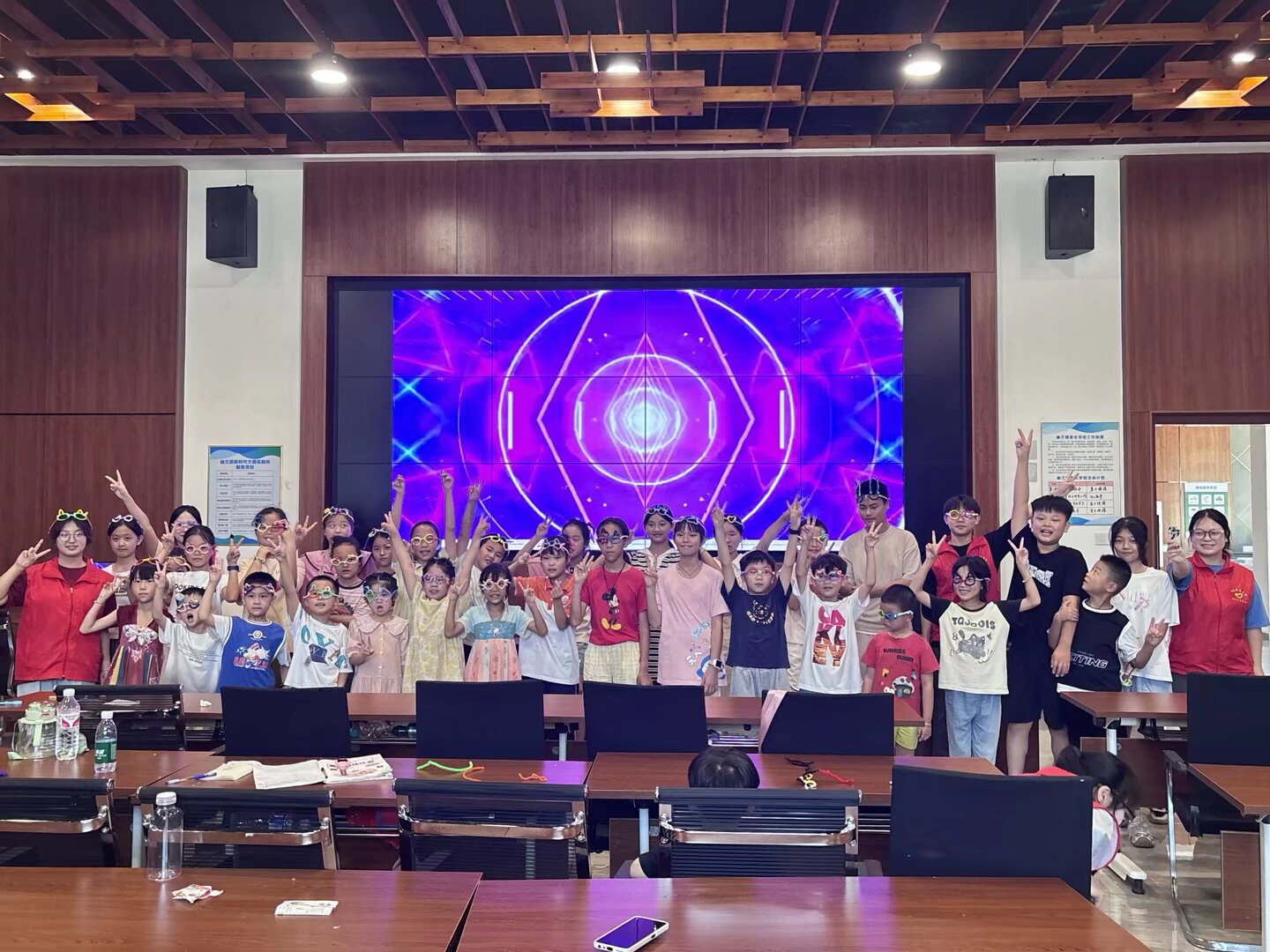 - 緊接著的“會魔法的眼鏡”手工課,則是一場創意與童趣的盛宴。孩子們在志愿者的幫助下,用五彩的扭扭棒,發揮天馬行空的想象力,擰制出形態各異、充滿奇思妙想的“魔法眼鏡”。圓形的、方形的、帶翅膀的、點綴著小花的……每一副眼鏡都是獨一無二的藝術品。最激動人心的環節當屬“魔法眼鏡秀”,孩子們戴上自己的作品,在志愿者的帶領下,自信滿滿地走上簡易“T臺”,擺出各種可愛的造型。這場別開生面的走秀,不僅鍛煉了孩子們的動手能力和創造力,更讓他們在展示中收獲了滿滿的自信與快樂,也讓志愿者們深刻感受到鄉村孩童的純真與爛漫。