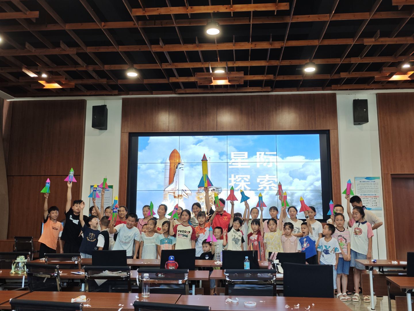 上午的第一堂課,志愿者們化身“科學導師”,帶領孩子們動手制作簡易“水火箭”。利用常見的可樂瓶,加水加壓,孩子們在志愿者的指導下分組協作,興奮地組裝著自己的“小火箭”。隨著“嘭”的一聲,“火箭”騰空而起,劃出漂亮的弧線,操場上頓時響起陣陣驚嘆與歡呼。最后,在全體師生熱切的注視下,承載著大家共同夢想的大號“幽蘭一號”成功發射升空。這堂生動的科學實驗課,不僅讓孩子們在動手實踐中理解了基礎物理原理,更在他們心中播下了探索未知的種子。