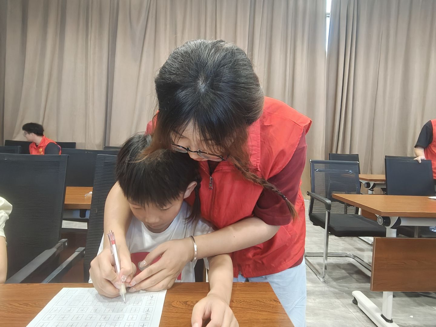 - 下午的課堂墨香四溢。針對學校書法課程相對缺乏的情況,志愿者們為孩子們帶來了一堂意義深遠的書法啟蒙課。“小小書法家”們端正坐姿,在志愿者的耐心指導下,學習正確的握筆姿勢,一筆一畫認真臨摹。志愿者們不僅教授書寫技巧,更穿插講述漢字的起源與演變,讓孩子們在書寫中感受中華優秀傳統文化的魅力。這堂書法課,對于提升留守兒童的專注力、審美素養以及文化認同感,起到了積極的啟蒙作用。
