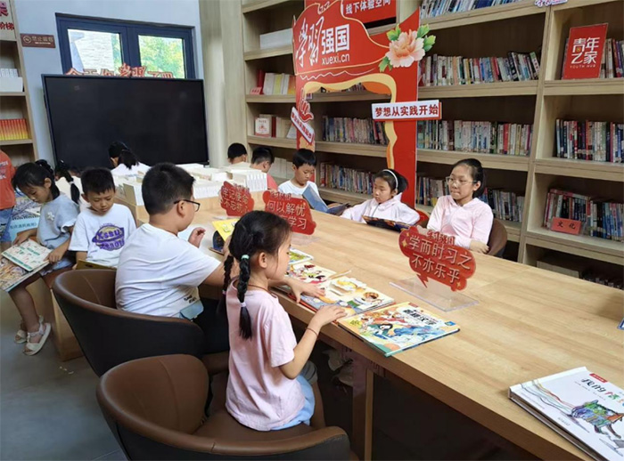 午后,閱讀角里,科普繪本與文學(xué)名著交織成知識星河,實踐團(tuán)成員與孩子們共讀共思,點亮智慧火種。