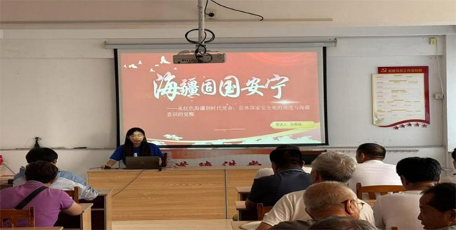 在甘肅古浪戰役紀念館,重溫紅軍西路軍在古浪地區浴血奮戰的英雄事跡;在武威市民勤縣蔡旗鎮蔡旗中學,通過知識問答等互動形式,讓孩子們在歡樂中了解海疆安全知識。在濱州博興中學,以歷史時間線為脈絡,結合生動案例講述海疆安全故事。在威海乳山府前社區,用通俗易懂的語言講解總體國家安全觀的內容宗旨。在日照黃墩鎮小草學堂,為小學生們講解中國近代曲折歷程與艱苦奮斗。在山西省晉中市祁縣下申村幼兒園宣講國防海防知識,在童趣互動中埋下國家安全的種子。