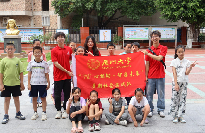 為響應國家教育數字化戰略和《教育強國建設規劃綱要(2024-2035年)》中“促進人工智能助力教育變革”的號召,廈門大學信息學院“‘AI’心相助·智啟未來”實踐隊在2025年7月深入廈門市多個社區與學校,通過實地調研、AI科普與編程教學,將前沿科技的種子播撒到青少年心中,用專業知識助力構建公平、可持續的基礎教育生態。