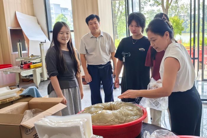 為探索農產品生產銷售新路徑,實踐隊前期開展了充分的文獻調研,并在專業教師的指導下,設計并實施了茶葉萃取實驗。隊員們充分利用專業知識,從原材料中提取出具有抗炎抑菌、提神醒腦功能的茶多酚,并進一步制備成茶多酚噴霧、牙膏、香皂等一系列衍生產品。帶著從實驗室制備的樣品,實踐隊與當地知名茶葉企業負責人龔長輝共同探討農產品的高附加值利用,龔長輝表示,未來愿意與華農化學學院進一步合作,共同探索商業化茶葉萃取技術,設計生產茶葉深加工產品,拓寬信陽毛尖市場。