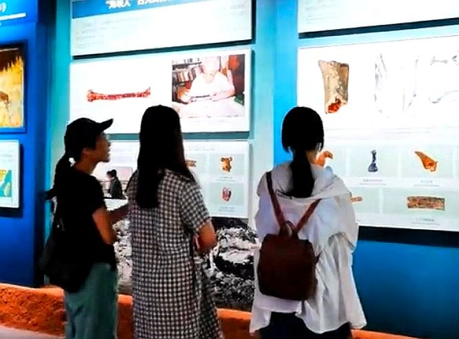 踏入博物館,在講解員引領下,實踐隊開啟南島語族文化解碼之旅。陳列的貝丘遺址文物,是南島語族先民生活的鮮活注腳 —— 層層貝殼堆積,訴說著漁獵采集的生存智慧;古樸陶器上的紋理,蘊藏著對自然、祖先的敬畏信仰。南島語族先民從平潭出發,駕獨木舟、戰驚濤,將文化火種播撒至太平洋諸島。
