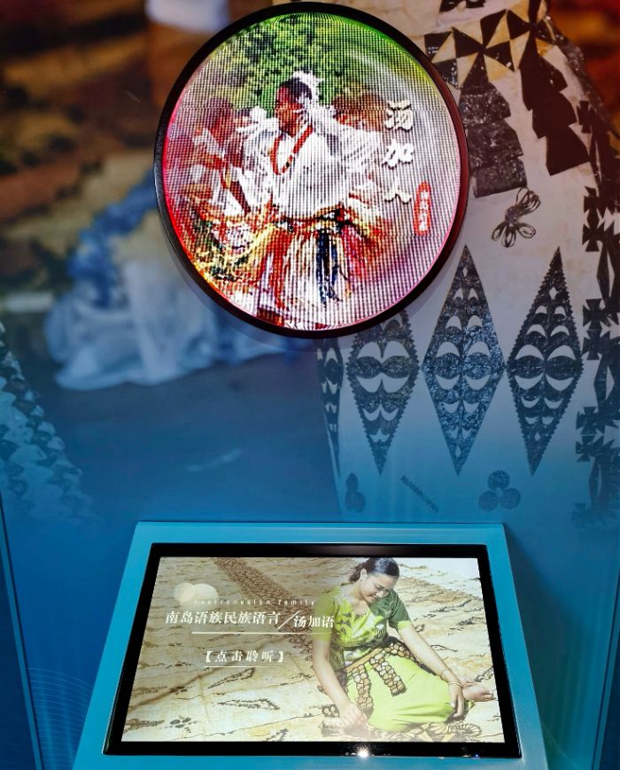通過參觀石器、骨器等文物,隊員們體悟到先民開拓海洋的勇氣,理解其文化對世界海洋文明版圖的深遠塑造力。博物館里,毛利語、夏威夷語、湯加語的視頻講解循環播放,不同語支的同源發音,印證著文化傳播的脈絡,隊員們作為“青春信使”記錄南島語族文化傳承的歷史記憶。