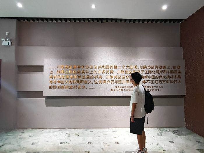 一踏入紀(jì)念館莊嚴(yán)肅穆的大門,一幅氣勢磅礴的大型紅色主題浮雕便以雷霆萬鈞之勢撞入眼簾。那遒勁有力的“赤化全川”誓言,如血染的戰(zhàn)旗,歷經(jīng)歲月風(fēng)霜依然鮮紅奪目,字字千鈞,叩擊心扉。浮雕上,紅軍將士們或持槍沖鋒,或振臂高呼,或相互攙扶,每一個堅毅的面容、每一個奮勇的身姿,都凝固著那段血與火交織的壯烈史詩。佇立于浮雕前,時間仿佛驟然倒流,耳畔依稀響起震耳欲聾的槍炮轟鳴、嘹亮激昂的沖鋒號角和戰(zhàn)士們視死如歸的吶喊。那份穿越時空的震撼,讓每一位成員都屏息凝神,深切體悟到革命勝利的基石,是由無數(shù)先輩用青春、熱血乃至生命一寸寸壘砌而成,其代價之沉重,成果之珍貴,令人刻骨銘心。