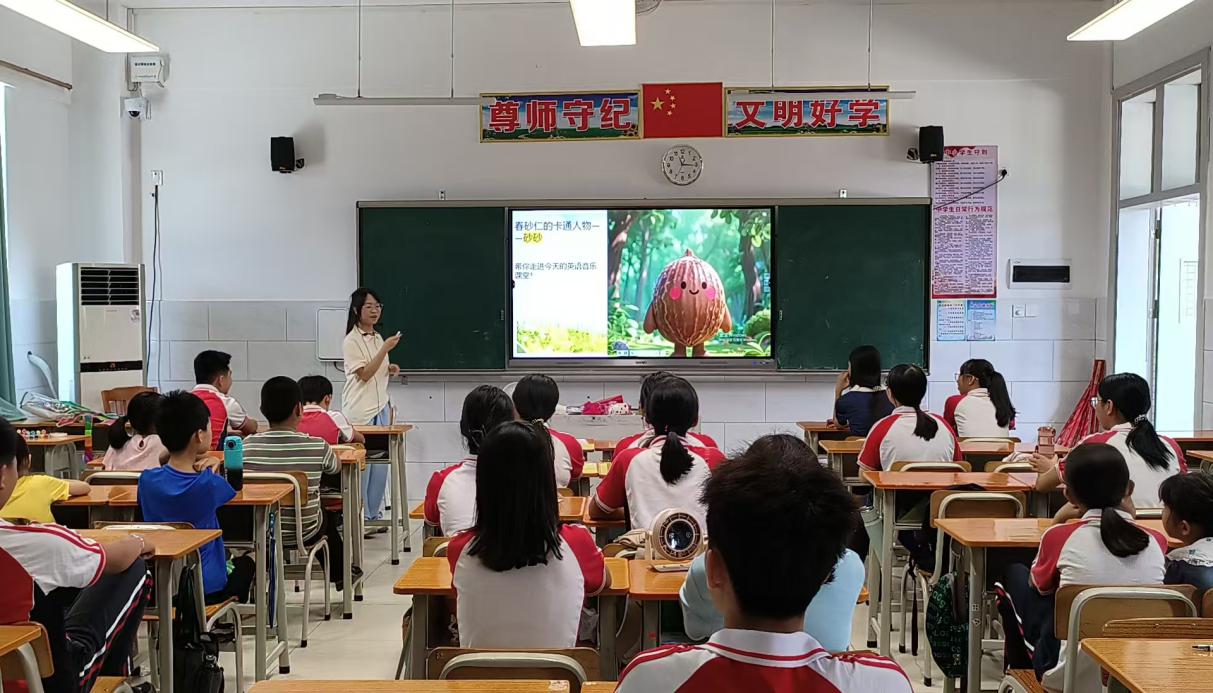 三、創(chuàng)新融合譜新篇:在文化與理想交織中踐行創(chuàng)造之美 而在培養(yǎng)學生“創(chuàng)造美”能力方面,實踐隊同樣別出心裁。文化說唱課程將陽江春砂仁、傳統(tǒng)風箏等具有濃郁地方特色的文化元素融入英文說唱。隊員們以富有感染力的節(jié)奏和生動的歌詞,結合春砂仁IP形象“砂砂”“箏箏”的趣味講解,讓學生們在歡快的說唱中,不僅提升了英語學習的興趣,還深入了解了家鄉(xiāng)特產(chǎn)的獨特魅力與非遺文化的深厚底蘊,真切感受到傳統(tǒng)與現(xiàn)代融合所產(chǎn)生的創(chuàng)新之美。