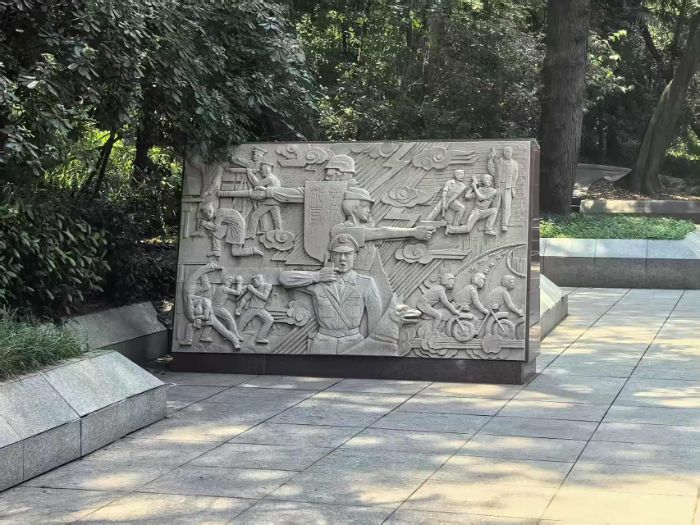 剛進園門,烈士就義群雕便在蒼松翠柏間靜靜矗立。十二尊雕像錯落有致地排列著,每一張臉龐都鐫刻著不同的神情:有目光如炬的青年,緊抿的嘴角藏著未說盡的壯志;有戴著手銬的知識分子,微微揚起的頭顱透著不屈的傲骨;還有位母親模樣的女性,衣襟上的褶皺里似乎還藏著對孩子的牽掛。我站在雕像前久久凝視,指尖不自覺地觸碰到身旁的梧桐樹干,樹皮的粗糙像極了雕像上斑駁的紋理。忽然注意到一位烈士雕像的褲腳沾著泥土,那是他們踏過山河的痕跡嗎?陽光穿過樹葉落在雕像的肩頭,明明是盛夏,我卻感到一陣來自心底的涼意——這是他們用熱血焐熱過的土地,如今每一寸都藏著無聲的訴說。