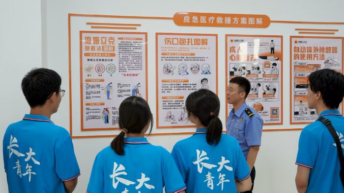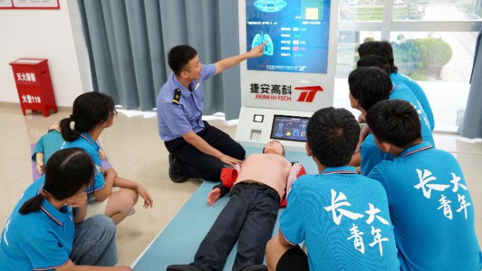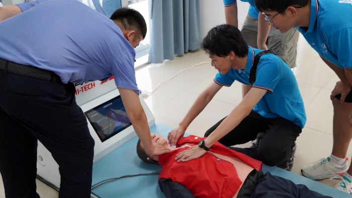 實(shí)踐團(tuán)隊(duì)與任主任開(kāi)展座談并學(xué)習(xí)客運(yùn)安全知識(shí) 在夯實(shí)安全理論基礎(chǔ)后,任主任為隊(duì)員們進(jìn)行了心肺復(fù)蘇術(shù)和海姆立克急救法的現(xiàn)場(chǎng)演示與詳細(xì)指導(dǎo)。他系統(tǒng)講解了急救的“黃金時(shí)間”概念、操作原理、關(guān)鍵步驟及注意事項(xiàng),著重強(qiáng)調(diào)了在突發(fā)情況下保持冷靜、科學(xué)施救的重要性。在任主任的指導(dǎo)下,實(shí)踐隊(duì)員們分組利用專(zhuān)業(yè)人體模型進(jìn)行了模擬訓(xùn)練。通過(guò)親身參與急救演練,實(shí)踐隊(duì)員們深刻體會(huì)到,這些看似簡(jiǎn)單的急救技能,實(shí)則是守護(hù)旅客生命安全的“硬核”本領(lǐng),是交通運(yùn)輸服務(wù)者必須具備的職業(yè)素養(yǎng)。