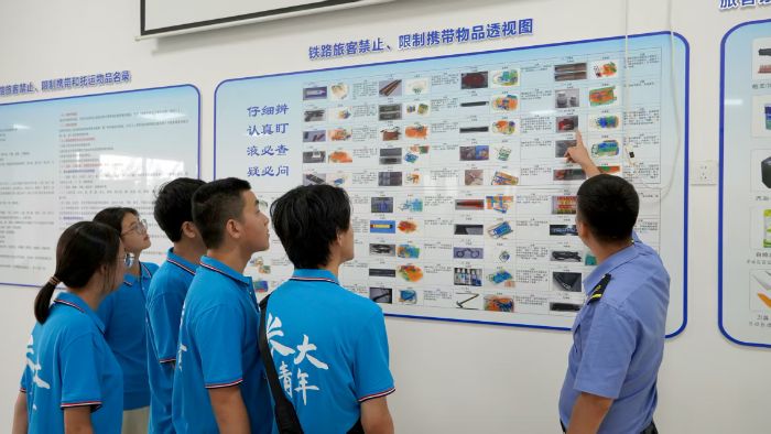 寶雞車(chē)務(wù)段客運(yùn)實(shí)訓(xùn)基地是集鐵路客運(yùn)技能培訓(xùn)、安全規(guī)范演練及服務(wù)效能提升于一體的重要實(shí)踐平臺(tái),致力于新時(shí)代高素質(zhì)鐵路客運(yùn)人才的培養(yǎng)與旅客平安出行的保障。實(shí)踐隊(duì)首先與實(shí)訓(xùn)基地任主任進(jìn)行了專(zhuān)題座談。任主任向隊(duì)員們系統(tǒng)介紹了寶雞車(chē)務(wù)段的發(fā)展歷程、運(yùn)營(yíng)概況及其在區(qū)域交通體系中的功能定位,并重點(diǎn)講解了客運(yùn)安檢、應(yīng)急處置、標(biāo)準(zhǔn)化服務(wù)等關(guān)鍵環(huán)節(jié)對(duì)于保障運(yùn)輸安全、提升旅客滿意度的基礎(chǔ)性與重要性。在任主任的示范與講解下,隊(duì)員們深入實(shí)訓(xùn)現(xiàn)場(chǎng),觀摩學(xué)習(xí)并親身體驗(yàn)了客運(yùn)安檢的標(biāo)準(zhǔn)化操作流程與規(guī)范要求。