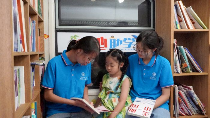 實踐團隊在“助學車廂”為小朋友們講解繪本故事