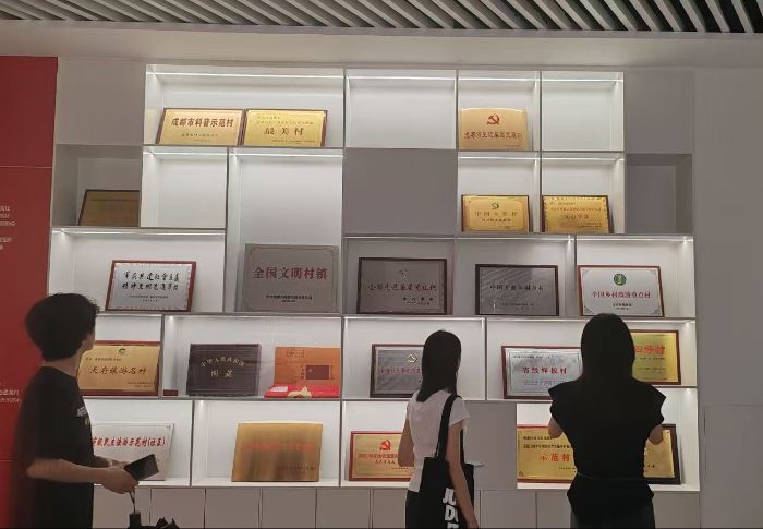 踏入榮譽展示區(qū),“全國先進基層黨組織”“中國美麗休閑鄉(xiāng)村”“全國鄉(xiāng)村旅游重點村”等牌匾有序陳列。隊員們駐足凝視,循著從“省級樣板村”到“全國先進”的發(fā)展軌跡,探尋出黨建引領、產(chǎn)業(yè)深耕、文旅融合的振興脈絡,深刻領悟到鄉(xiāng)村騰飛離不開多方合力,更需久久為功,而這滿墻榮譽,是戰(zhàn)旗村從產(chǎn)業(yè)破局到全面振興的“奮斗勛章”,也是戰(zhàn)旗村鄉(xiāng)村振興奮斗成果的生動見證。