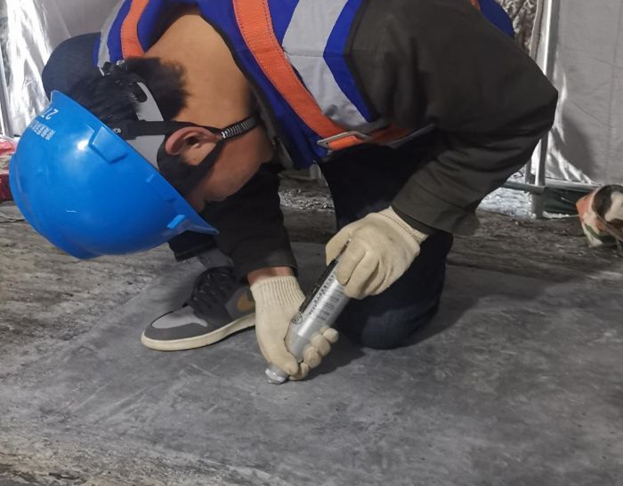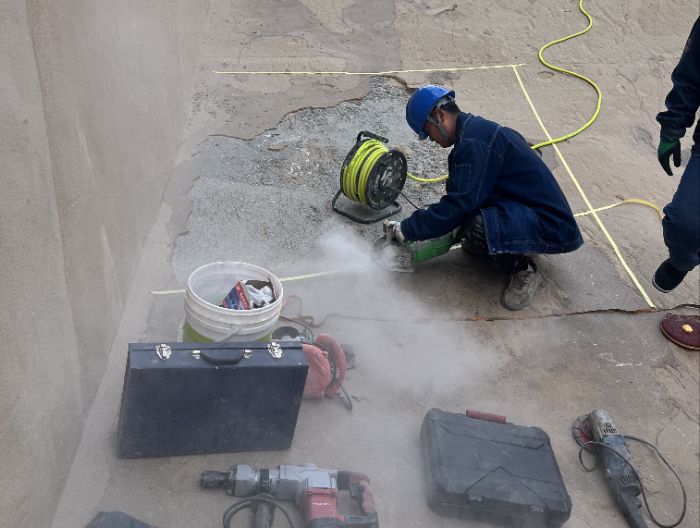 參觀過程中,負責人介紹了因高速水流長期沖刷而形成的水毀區域。在現場工作人員引導下,實踐隊員們仔細記錄了水毀損傷呈現出的各類宏觀現象,比如泄水建筑物表面出現的明顯裂縫以及混凝土表層因水流沖擊而產生的剝落等問題。實踐隊員第一次直觀地接觸泄水建筑物的水毀損傷情況,實現了從書本走向現實,從理論走向實踐,讓他們對水毀問題有了更真切、更具體的感受。實踐隊在工作人員幫助下,現場劃定了試驗區并采集相關樣品,為后續修復材料的研究和驗證提供了基礎。