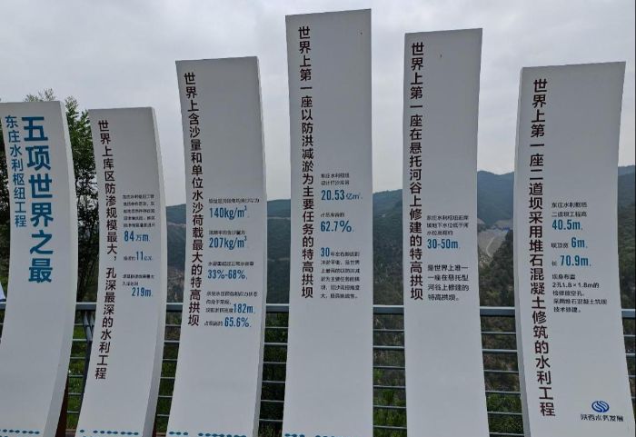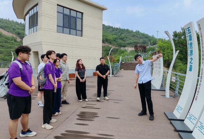 何少川為大家詳細介紹了東莊水利工程的五項世界之最。并重點介紹了東莊水利樞紐工程投運50年,可減少入渭河泥沙30.51億噸,減少渭河下游河道泥沙淤積6.57億噸,使渭河下游河道累計淤積厚度由2.6米減少為0.76米,將有效解決渭河淤積和洪水災害問題,推動我國黃河流域生態保護和高質量發展。聽到這一串串改善民生、維護安全的數字,實踐隊員感慨道:“紙上得來終覺淺,親臨東莊工程現場,才真正體會到水利工程的價值和意義是多維度的、深遠的。”