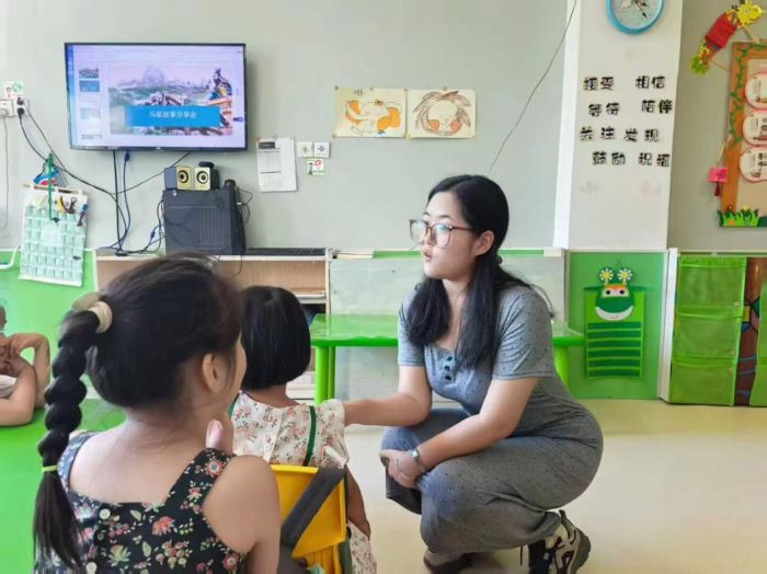 圖為實踐隊隊員在對小朋友講解游戲規則閆藝凡供圖