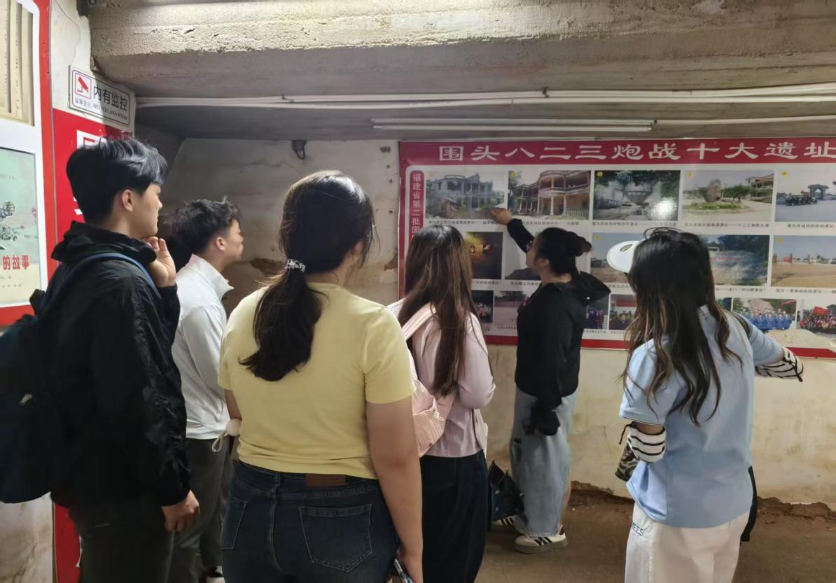 在圍頭村第一黨支部書記洪萬亞接待下,實(shí)踐隊(duì)踏入圍頭八二三戰(zhàn)地公園,團(tuán)隊(duì)首先參觀了炮戰(zhàn)紀(jì)實(shí)展館,在“炮擊金門”主題展區(qū),隊(duì)員們駐足于詳實(shí)的文字史料、珍貴的歷史照片前,深入了解 1958 年“八二三炮戰(zhàn)”這一重要?dú)v史事件。從戰(zhàn)役背景到具體進(jìn)程,從炮火交鋒到兩岸關(guān)系的微妙轉(zhuǎn)折,大家沉浸式回溯那段充滿熱血與堅(jiān)守的歲月,深刻認(rèn)識到維護(hù)國家領(lǐng)土完整、捍衛(wèi)民族尊嚴(yán)的重大意義,體悟到先輩們在復(fù)雜局勢下堅(jiān)定守護(hù)家國的決心。