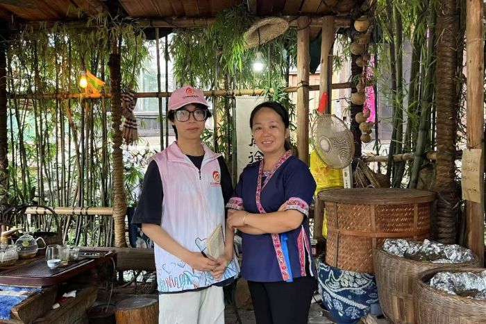 志愿者了解并記錄侗語問候語“Ya Lai”(你好),設計了“普通話+侗語”對照卡構建雙語橋梁。通過“榫卯幾何課”“長桌宴哲學課”,將程陽八寨入選廣西精品研學線路的優勢轉化為傳承動能。