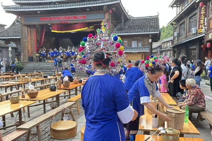問卷中“年輕群體傳承意愿低”“宣傳不足”被列為非遺存續最大阻礙。百家宴敬酒歌混入流行旋律,侗族大歌表演為迎合游客縮短時長。村民表示,特定節日才有熱鬧場景,今年游客尤其少。當“高山流水”敬酒儀式淪為打卡項目,文化內核正被稀釋。