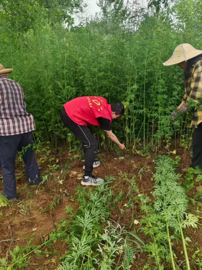 傍晚收工時,經(jīng)過統(tǒng)計成果:4名同學(xué)一天清除2畝地的雜草。村支書算了筆賬:“雇人除草一天要150塊工錢,你們這是幫村里省了450塊呢!”但同學(xué)們收獲的遠不止這些。在柴胡地旁的老槐樹下,趙大爺給我們講起村里的變化,趙大爺?shù)倪@些話語比任何報告都鮮活,讓同學(xué)們明白鄉(xiāng)村振興不是抽象的概念,而是水渠里流淌的清水、藥材市場上的訂單,也是我們拔掉的每一棵雜草。