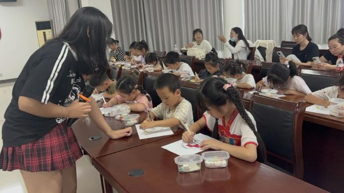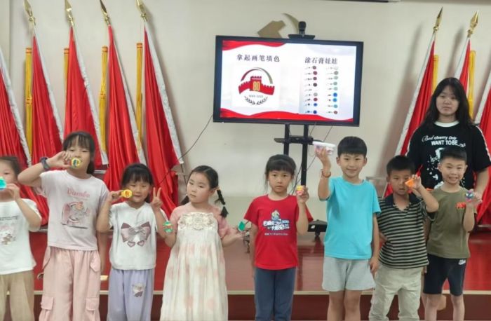 彭佳玉同學負責后續與小朋友們的互動交流,通過填色與石膏娃娃繪制等互動,以專業且富有溫度的引導,讓紅色種子在孩子們心中進一步扎根,為紅色教育的創新實踐提供了生動范本。