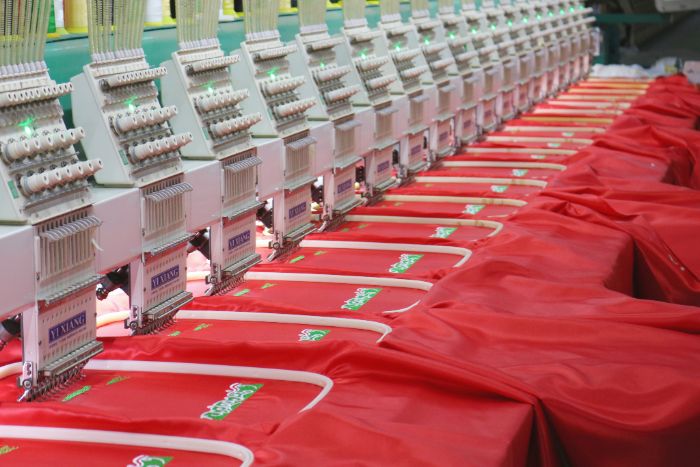 隨后,團隊走進該企業生產車間。據了解,該企業引進多套機械生產設備,實現從剪裁、縫制到繡花全流程機械化,人工僅負責輔助與質檢。全程機械化不僅提升工藝精度與生產效率、保障產品一致性,還有效減少廢料產生與污染排放,切實踐行了綠色制造理念。“依托這些設備,我們工廠在疫情期間保證了生產不間斷,實現了產額逆勢增長。”工作人員介紹道。