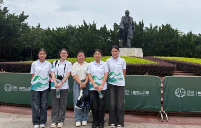 蓮花山公園是團(tuán)隊實踐的最后一站。隊員登上山頂廣場,與矗立在廣場中央的鄧小平銅像合影。身后是深圳這座現(xiàn)代化國際大都市的壯麗畫卷,面前是改革開放總設(shè)計師堅定向前的雄偉塑像。團(tuán)隊舉行了簡短的瞻仰儀式,敬獻(xiàn)花籃、齊聲朗誦《改革開放頌》,表達(dá)對改革開放總設(shè)計師的深切緬懷和崇高敬意。