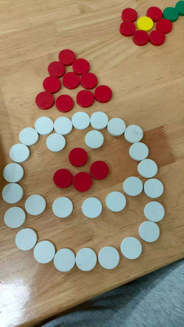 益智拼搭課則以彩色圓片為載體,搭建思維訓練場域。志愿者引導孩子觀察形狀、探索組合規律,鼓勵突破定式思維。在自由創作環節,圓片經小手拼組,接連誕生花朵、圣誕樹、城堡等造型,獨特想象力與空間思維能力,借由色彩與形狀的碰撞充分展現。孩子們在分享作品思路時,同步鍛煉語言表達,在互賞互評中拓寬創意視野。益智拼搭場域,圓片拼組的不僅是造型,更是思維的對談——分享奇思、協作試錯,把“我想的”變成“我們做的”。