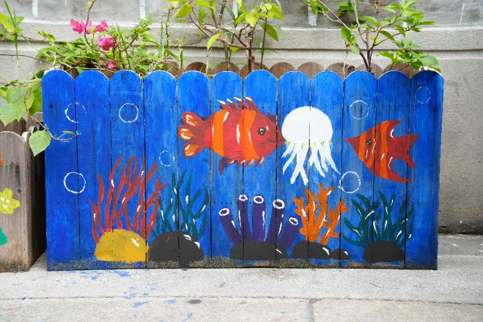 ▲突擊隊隊員與孩子們一起繪畫的花箱成果