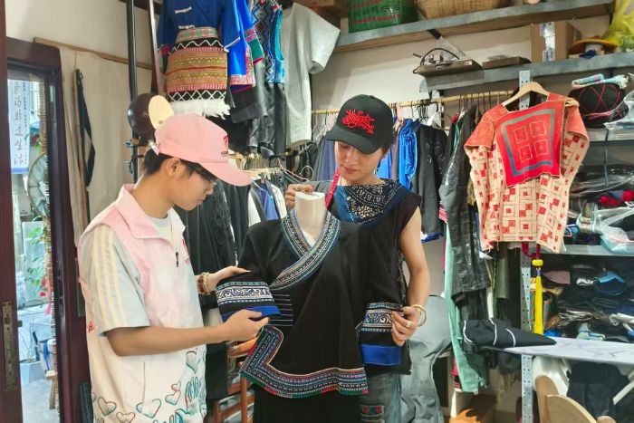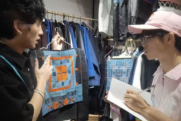此外,志愿隊(duì)關(guān)注到洛老師在非遺與現(xiàn)代生活融合方面的實(shí)踐。洛老師致力于將非遺元素融入日常生活,其設(shè)計(jì)的壯錦記事本使用半幅壯錦裝飾以貼合年輕化需求,麼乜耳墜縮小尺寸契合現(xiàn)代審美,在保留傳統(tǒng)元素基礎(chǔ)上,兼顧現(xiàn)代款式與新面料運(yùn)用。洛老師提及,需對(duì)傳統(tǒng)技藝進(jìn)行提煉,將精華部分以更直觀方式呈現(xiàn),使非遺手工藝品符合現(xiàn)代審美與生活需求,推動(dòng)傳統(tǒng)文化“活”在新時(shí)代。當(dāng)?shù)卮蛟斓?ldquo;薩瑪非遺生活館”坐落在現(xiàn)代化設(shè)計(jì)咖啡館內(nèi),民族元素與現(xiàn)代空間碰撞融合,為非遺傳播提供新場(chǎng)景。洛老師還收到邀約參加張家港守望長(zhǎng)江·民俗文化市集,將廣西民族文化帶至浙江,這些實(shí)踐為志愿隊(duì)理解非遺傳承創(chuàng)新提供了鮮活案例。