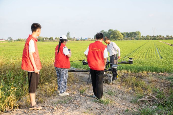 圖三:釣魚鎮(zhèn)合影 杜思雨攝 (三)智慧農(nóng)業(yè)繪新景,科技點(diǎn)亮振興夢(mèng)為探究數(shù)字技術(shù)如何賦能現(xiàn)代農(nóng)業(yè),南京農(nóng)業(yè)大學(xué)小秾人碳索綠途服務(wù)隊(duì)前往興化市,開展智慧農(nóng)業(yè)主題問卷調(diào)研。在村委會(huì)協(xié)助下,成員們通過與村干部、農(nóng)戶交流,了解到無人機(jī)植保、清潔能源利用、智能灌溉等綠色低碳技術(shù)在鄉(xiāng)村的實(shí)踐成效,更深刻體會(huì)到科技創(chuàng)新對(duì)推動(dòng)農(nóng)業(yè)綠色低碳轉(zhuǎn)型、實(shí)現(xiàn)鄉(xiāng)村生態(tài)振興的核心驅(qū)動(dòng)作用。