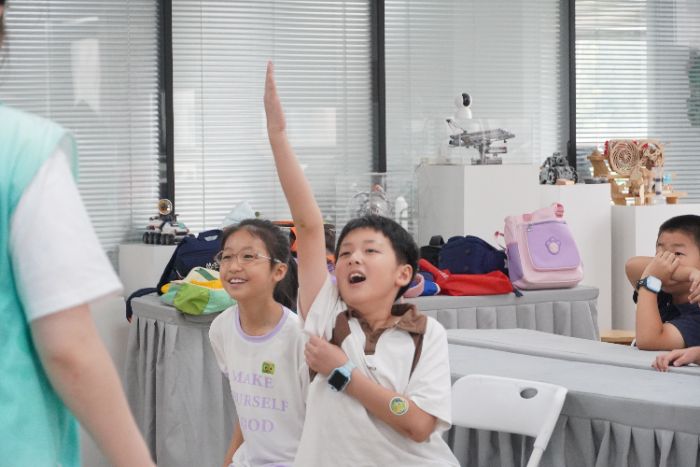 圖為社區(qū)孩子積極舉手回答團隊成員問題。 裴春蕾 陳天樂供