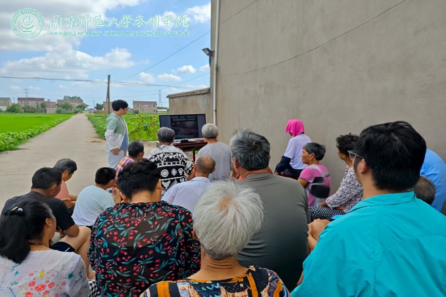 圖為張鵬同學在東臺市時堰鎮后港社區為老人宣講。