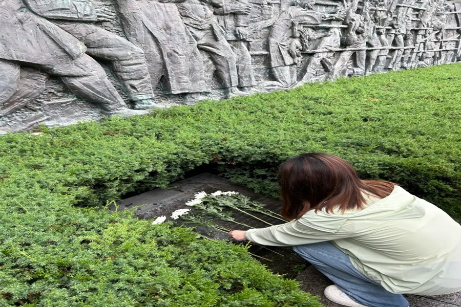 圖為團隊成員在南京大屠殺博物館為英烈獻花默哀。