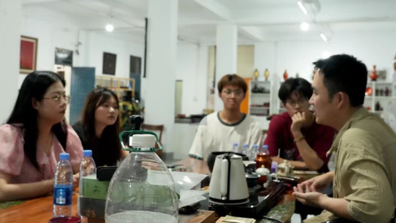 當(dāng)被問及傳承困境,李鏘坦言:“年輕人嫌打磨太苦,來實習(xí)的學(xué)生,很多最后去了廣告公司。”但他也有新嘗試:“現(xiàn)在直播能賣些貨,效果還不錯。”他建議隊員們:“先做‘漆藝IP’,用短視頻講漆樹采漆的故事,比硬推銷管用。”這場專訪讓隊員們更讀懂了匠人“守藝不守舊”的堅持。