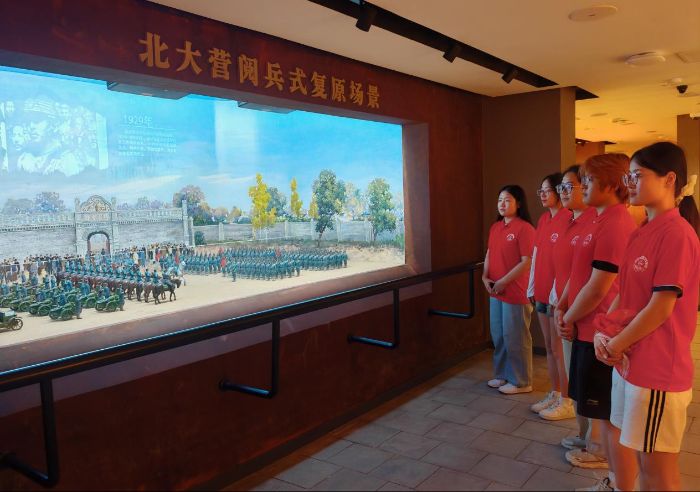 團(tuán)隊(duì)成員懷著肅穆之心走進(jìn)北大營(yíng)營(yíng)房舊址。三棟灰磚營(yíng)房靜靜矗立,斑駁墻面上的彈痕遺跡清晰可見(jiàn)。隊(duì)員們?cè)陉惲叙^內(nèi)駐足,老照片里東北軍士兵的堅(jiān)毅眼神、泛黃的軍裝紐扣、銹蝕的步槍零件,無(wú)聲訴說(shuō)著“九一八”當(dāng)夜的抗?fàn)帯?fù)原的營(yíng)房場(chǎng)景中,折疊整齊的被褥、墻上的軍事地圖,仿佛將人拉回那個(gè)烽火時(shí)刻。講解員細(xì)數(shù)日軍突襲細(xì)節(jié)與官兵自發(fā)抵抗的故事,隊(duì)員們不時(shí)駐足記錄,在“抗戰(zhàn)起點(diǎn)”紀(jì)念碑前集體默哀。這場(chǎng)參觀讓歷史課本上的文字變得鮮活,青春的腳步與百年史跡相遇,更懂和平的珍貴。