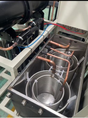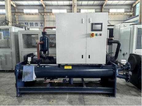 調(diào)研過程中,企業(yè)負(fù)責(zé)人系統(tǒng)介紹了核心設(shè)備的工作原理,并以螺桿式冷水機(jī)組為例,詳細(xì)闡釋其高效散熱機(jī)制:該設(shè)備基于制冷劑“蒸發(fā)吸熱、冷凝放熱”的循環(huán)原理,通過五大核心部件協(xié)同實(shí)現(xiàn)持續(xù)散熱。系統(tǒng)運(yùn)行伊始,壓縮機(jī)將低溫低壓的制冷劑蒸氣壓縮為高溫高壓狀態(tài),為熱量轉(zhuǎn)移提供動力;油分離器隨即分離蒸氣中夾帶的潤滑油,保障換熱效率。隨后,高溫高壓蒸氣進(jìn)入冷凝器與冷卻水進(jìn)行熱交換,冷凝為高壓液體并釋放熱量;高壓液體經(jīng)節(jié)流閥降壓,形成低溫低壓氣液混合物并進(jìn)入蒸發(fā)器,吸收冷凍水熱量后完全蒸發(fā),低溫冷凍水即可實(shí)現(xiàn)設(shè)備降溫。最終,制冷劑蒸氣重回壓縮機(jī),開啟下一輪循環(huán),為工業(yè)設(shè)備提供穩(wěn)定可靠的散熱保障。