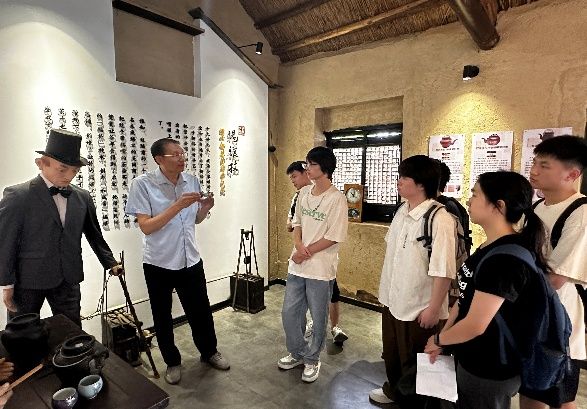 調(diào)研中,團(tuán)隊成員走訪參觀了博物館的展品陳列,并圍繞藏品特色、運(yùn)營模式、資金來源、觀眾結(jié)構(gòu)、專業(yè)能力、政策執(zhí)行、創(chuàng)新轉(zhuǎn)化等問題,與博物館非遺傳承人王海峰進(jìn)行了深入訪談。“我們最初的信念就是把錫鑲非遺技藝傳承下去。我們每天在講解錫鑲非遺技藝的同時,也介紹威海的歷史、英租的歷史,以及喝茶的禮儀等。通過一系列的講解,讓大家、特別是讓參與研學(xué)的孩子,熱愛家園,珍惜美好的生活!”非遺傳承人王海峰介紹,博物館自2023年建成以來,已經(jīng)與多所高校展開深入合作,共同開發(fā)文創(chuàng)產(chǎn)品與傳統(tǒng)文化課程。同時,該館緊緊圍繞鄉(xiāng)村振興戰(zhàn)略,把非物質(zhì)文化遺產(chǎn)與文化旅游相結(jié)合,積極促進(jìn)業(yè)態(tài)多元化,整合非遺體驗、紅色教育、民宿餐飲、影視拍攝基地等資源,打造東南鄉(xiāng)景區(qū),吸引了市內(nèi)外大批游客參與研學(xué)體驗。在激活鄉(xiāng)村文化資源帶動產(chǎn)業(yè)共通共融中,釋放了文旅經(jīng)濟(jì)新動能,也促進(jìn)威海錫鑲非遺文化更好地傳承與發(fā)展。
