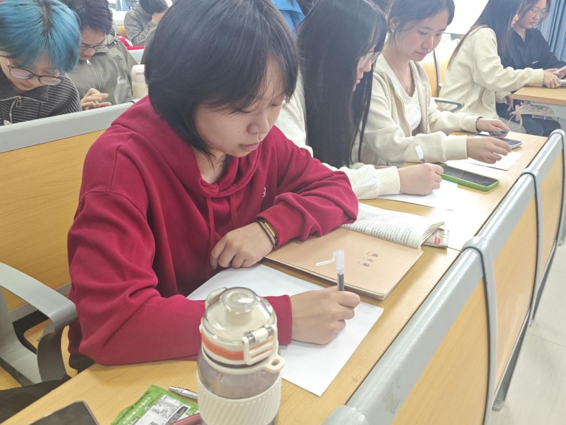 在互動環節熱烈氣氛的余溫下,志愿者將視角投向‌廣闊天地與未來藍圖‌,運用‌動態數據圖表與鮮活案例‌,闡釋“華龍一號”的‌全球影響‌,描繪了其從全球首堆落地到海外批量建設的足跡,生動展現其在服務國家“雙碳”目標、清潔能源基石中擔當的大國角色。‌活動過半,同學們‌更加深度共鳴,在“我是華龍代言人”創意環節中踴躍表達,欣然提筆,寫下“向世界推薦華龍一號的一個個理由”,現場金句頻出、火花四濺。志愿者們逐一為紙張加蓋“兩彈一星”標識印章,鮮紅印記如精神火種嵌入紙頁。眼眸中的印記,更加強化了同學們對這項 ‌“國家名片”全球價值的