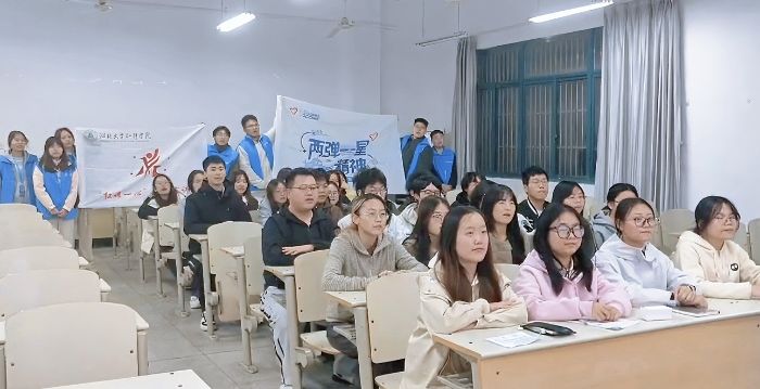 為深入學習貫徹黨的二十大精神,賡續(xù)“熱愛祖國、無私奉獻,自力更生、艱苦奮斗,大力協(xié)同、勇于登攀”的“兩彈一星”精神,2025 年 10 月 21 日,湖北大學知行學院“紅曜一心”志愿宣講團在知真樓 107教室舉辦“黨領導下的核工業(yè)”主題宣講。活動以“你說我猜、印章寄情、誓言明志”為主線,把黨的光輝歷程與我國核工業(yè)跨越式發(fā)展的壯麗史詩深度融合,為現場 數百余名學子帶來一場“有知有味”的沉浸式思政大課。