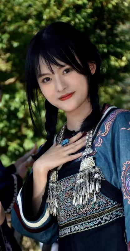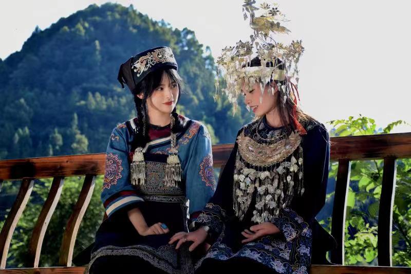 通過兩天的實(shí)地調(diào)研我們發(fā)現(xiàn)許多問題,首先,馬尾繡文化宣傳方面存在顯著問題。作為水族特色刺繡技藝,卻僅在當(dāng)?shù)亓鱾鳎叱鋈紖s鮮為人知,我們不僅感到惋惜,如此精美的刺繡不應(yīng)埋沒于此。帶著“民族”與“非遺”標(biāo)簽的馬尾繡文化應(yīng)走入更多人的視野。其次,我們更能發(fā)現(xiàn),馬尾繡文化傳承方面也存在一定的問題。當(dāng)?shù)啬贻p人對(duì)學(xué)習(xí)馬尾繡技藝興致不佳,政府引導(dǎo)的技藝學(xué)習(xí)活動(dòng)參與感較低。那么如何讓年輕人更喜歡這項(xiàng)技藝并愿意學(xué)習(xí)呢?我們結(jié)合當(dāng)下時(shí)代特色,迎合年輕人的愛好傾向,拍攝了一組馬尾繡服飾寫真。所用拍攝道具大多為國家級(jí)馬尾繡傳承人宋水仙女士支持物品,如:水族民間藏館內(nèi)的馬尾繡服飾、戒指、頭巾、手鐲、包包等。
